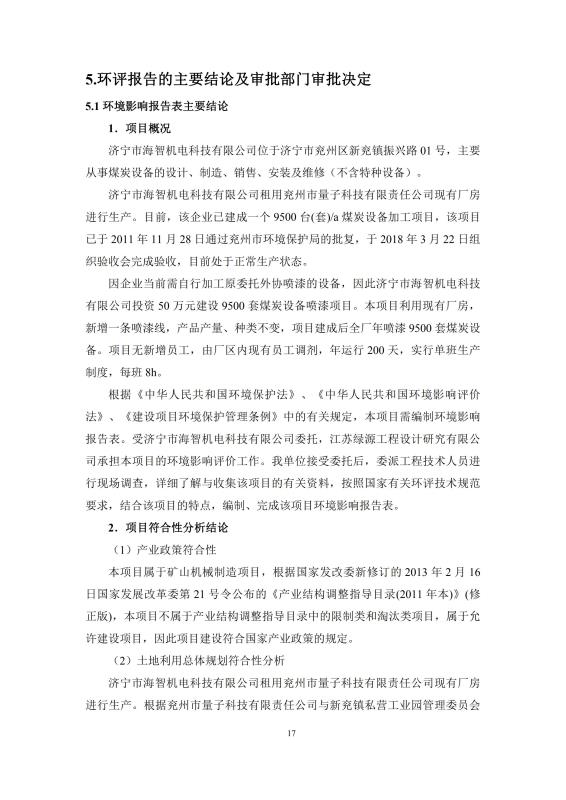9500套煤炭設備噴漆項目竣工環(huán)境保護驗收監(jiān)測報告