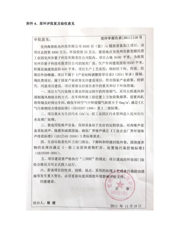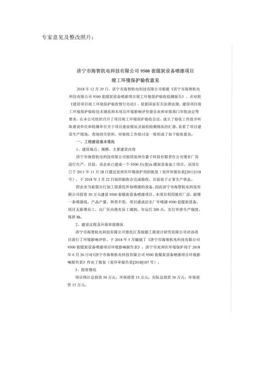 > 9500套煤炭設備噴漆項目竣工環(huán)境保護驗收監(jiān)測報告